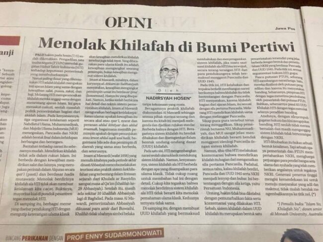 Membantah berbagai narasi khilafah ala HTI. Tulisan saya di Jawa Pos hari ini 12 Mei 2018 menyikapi putusan PTUN. Thought it might be of interest to you 🙏😊 Tabik, Nadirsyah Hosen Link berita