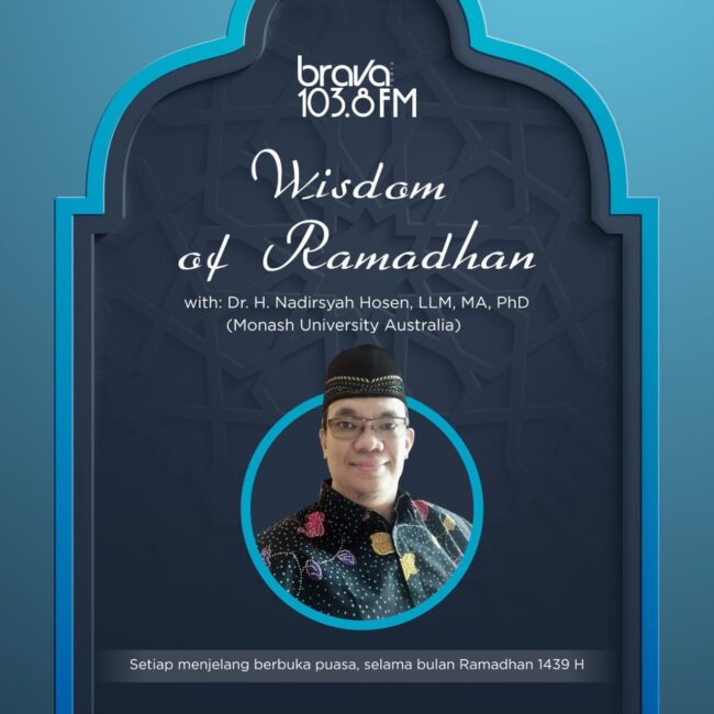 Mulai Kamis sore 17 Mei 2018 setiap 5 menit menjelang berbuka puasa, saya akan menemani kawan-kawan dalam program Wisdom of Ramadhan di @Bravaradio 103.8FM Jakarta. Yg di luar Jakarta bisa menyimak lewat aplikasi Brava Radio atau online di radioonline.co.id/brava/ Marhaban Ya Ramadhan🙏 Tabik, Nadirsyah Hosen Monash Law Schoo